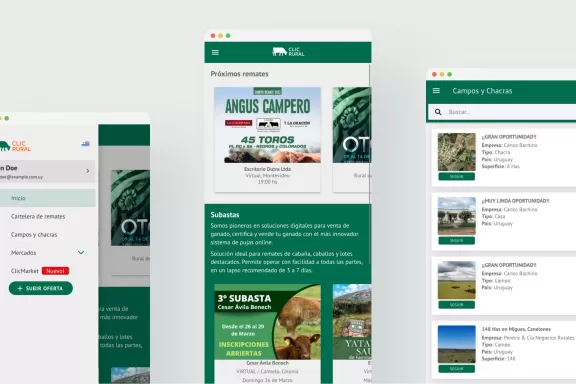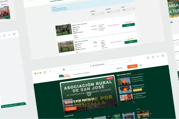 Clic Rural is an online platform for buying and selling agricultural products in Uruguay. Its goal is to efficiently and transparently connect buyers and sellers, providing tools and resources to improve the buying and selling experience.