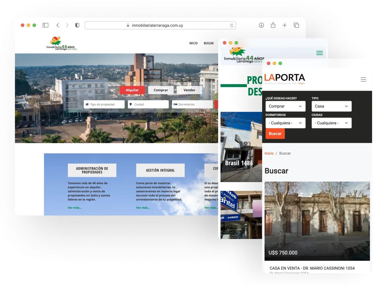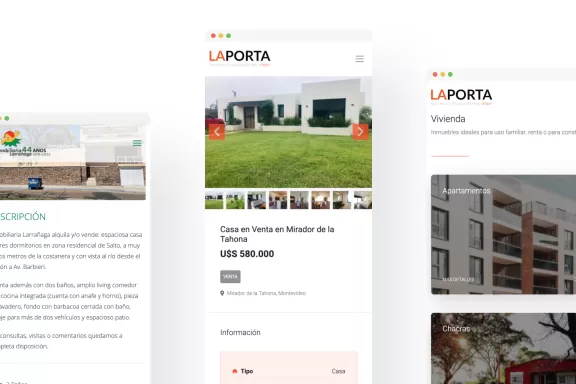 Our clients are real estate agencies looking for an effective and professional online presence. Recently, we have worked with Inmobiliaria Larranaga and Inmobiliaria La Porta, creating custom websites that have allowed them to increase their online visibility and close more deals.